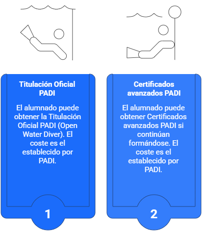 Las certificaciones PADI, las prácticas en el mar y la obtención del título náutico son actividades voluntarias. Son oportunidades adicionales que el centro ofrece al alumnado, pero no son obligatorias para aprobar ni para cursar la materia con normalidad.
